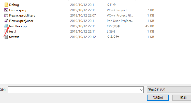 ⑥添加现有项文件,会自动生成一个cpp文件,同时在该文件夹目录下新建一个test.txt,并且设置调试->工作目录->命令参数->设置为刚才新建的test.txt文件