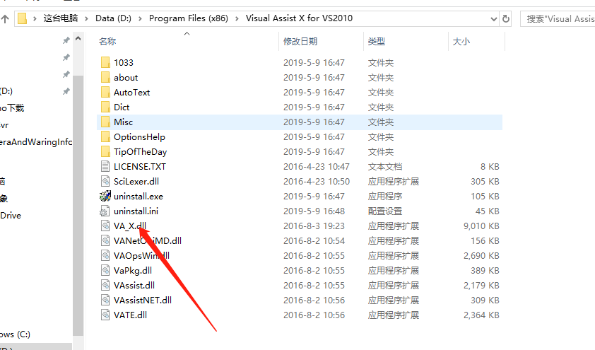1 )在安装目录下,我的是(D:\Program Files (x86)\Visual Assist X for VS2010)