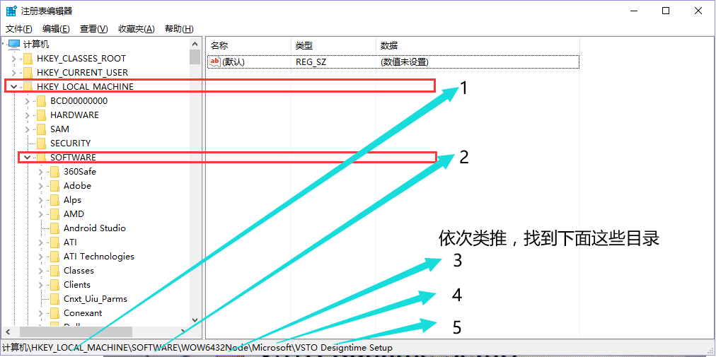 找到HKEY_LOCAL_MACHINE\SOFTWARE\Wow6432Node\Microsoft\VSTO Designtime Setup