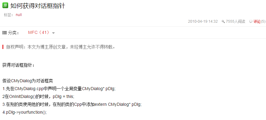 总结:对于子对话框中运用rich-edit control控件的情况,应该在主对话框对应的.cpp(注意,不是Dlg.cpp)文件的InitInstance()函数的开头处添加语句:AfxInitRichEdit();