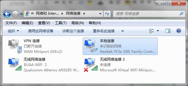 2)、在两台电脑的“打开网络和共享中心”→“更改适配器设置”中均应该是如下状态: