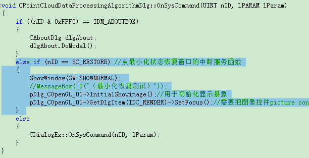 28、问题:在对话框最小化之后恢复对话框显示,此时怎样执行响应函数