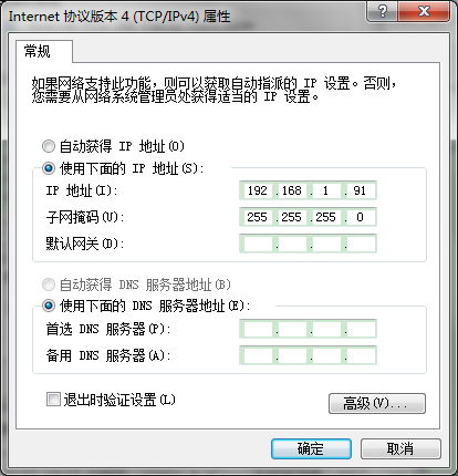 服务器IP地址:192.168.1.91(和电脑1保持一致)