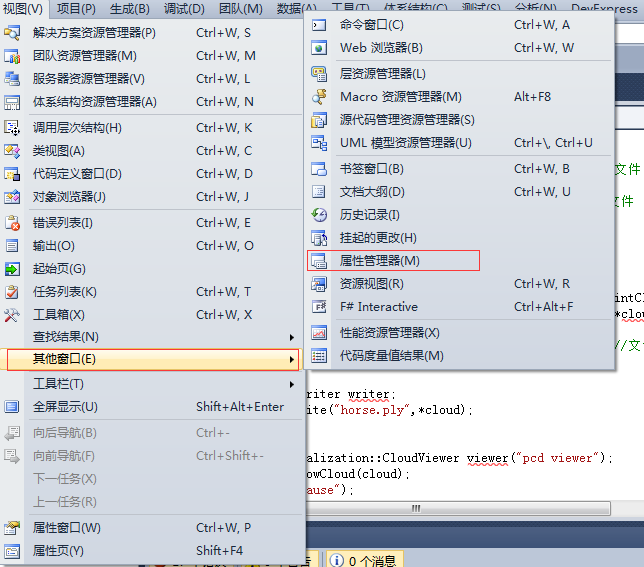【视图】--> 【其它窗口】 --> 【属性管理器】