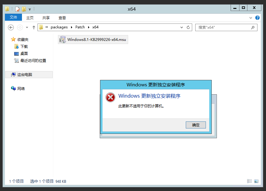 错误日志:Windows8.1-KB2999226-x64.msu 安装失败