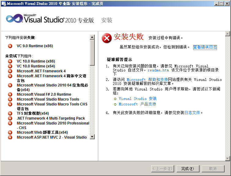 而10专业版虽然能进入安装界面,但是在安装的时候也出现的故障,没有一个组件能安装成功,这还是刚买的新电脑...