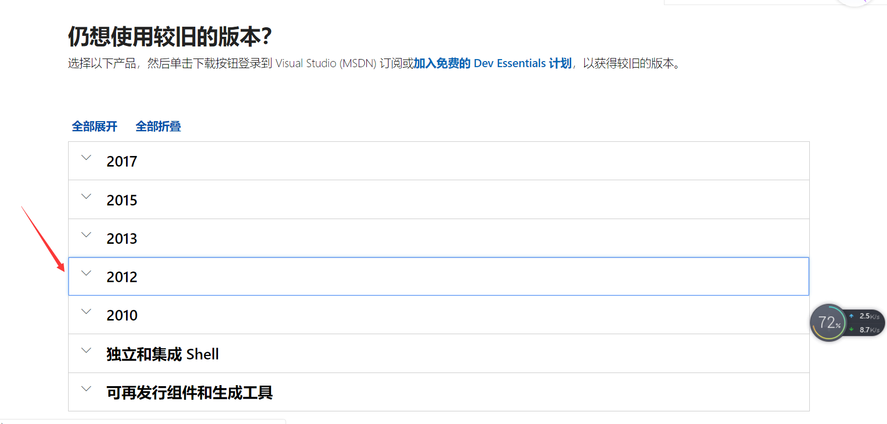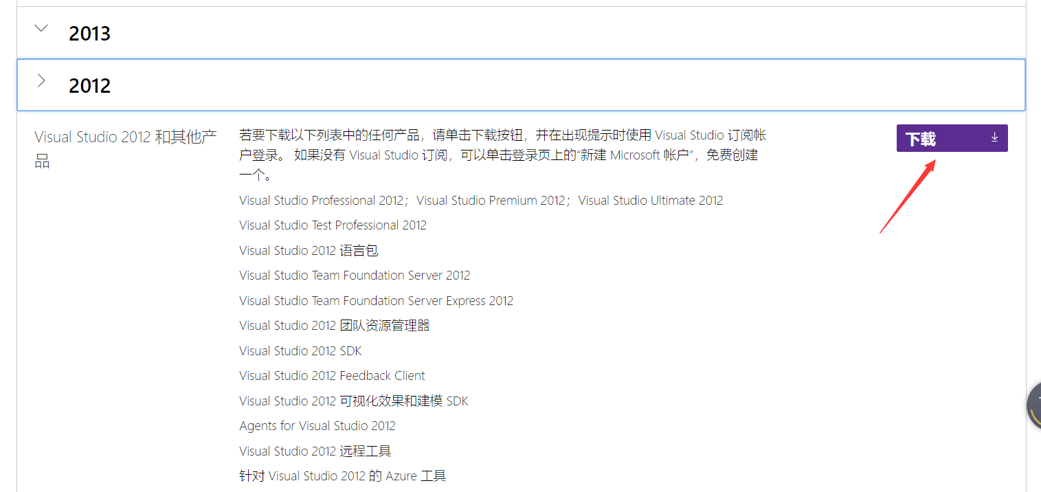 点击2012,这些以前的版本都在这里,下载哪个版本进行选择即可