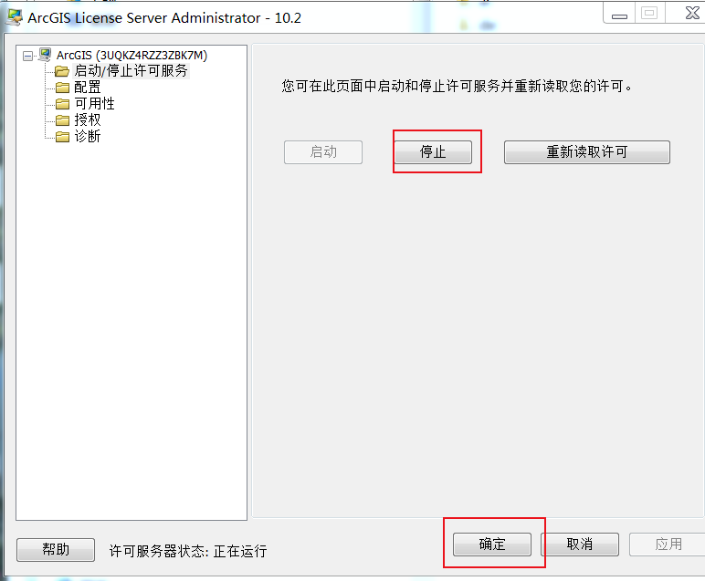 再一次打开ArcGIS License Server Administrator,选择启动服务,并点击确定