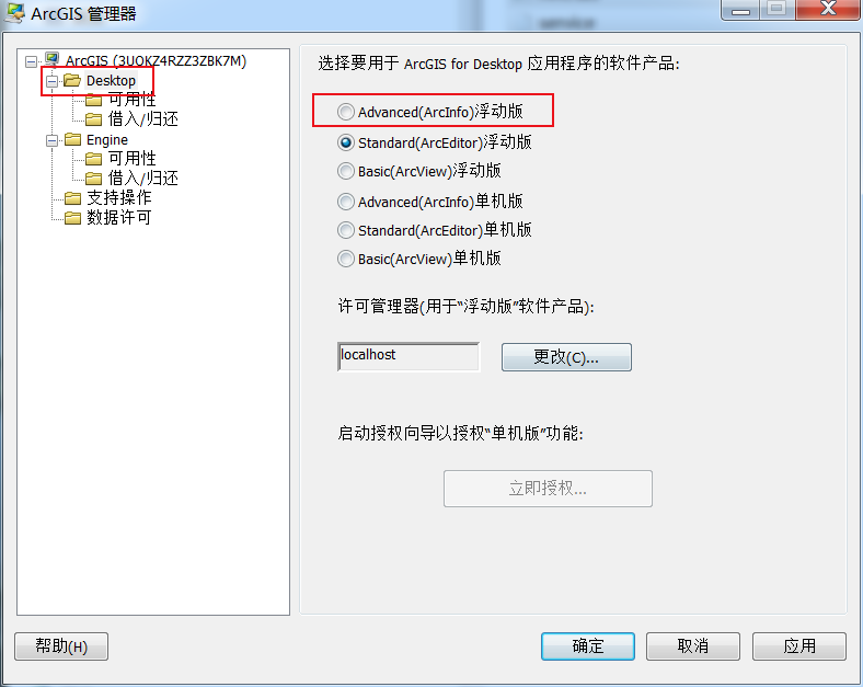 再一次打开ArcGIS管理器导向,选择ArcGIS Engine浮动版