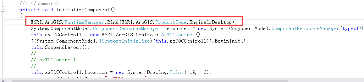 ESRI.ArcGIS.RuntimeManager.Bind(ESRI.ArcGIS.ProductCode.EngineOrDesktop);