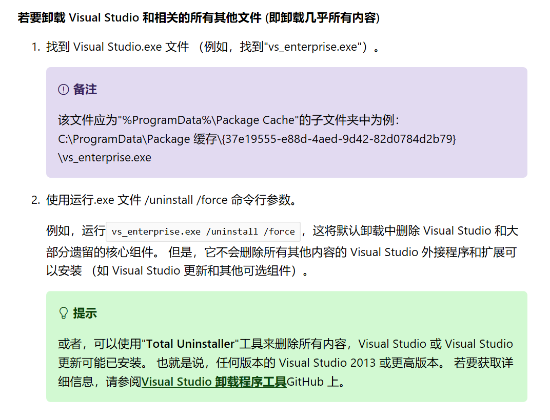 地址:VS卸载说明文档