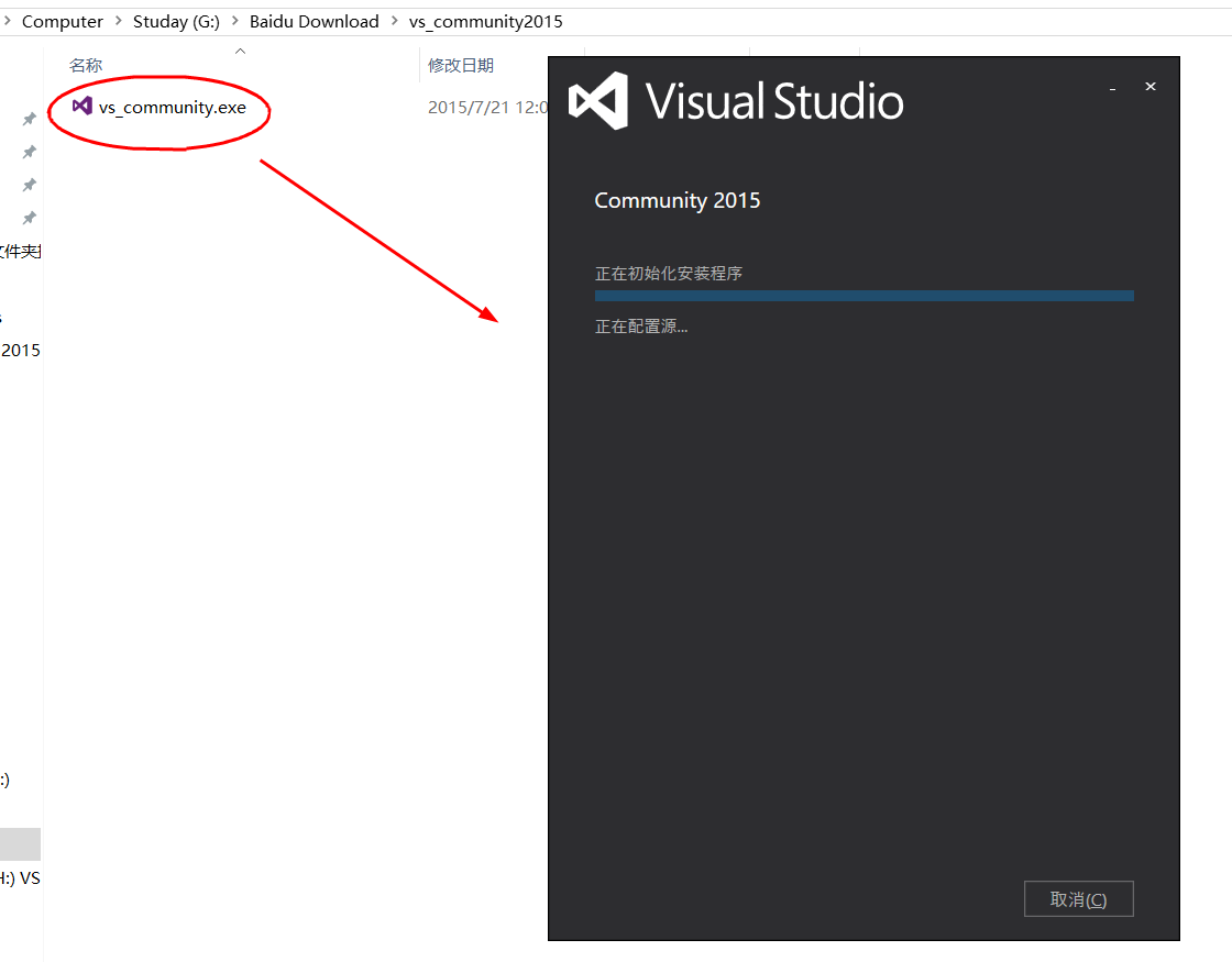 Visual Studio 2015安装时,点击vs_community.exe 安装执行程序,电脑没有反应