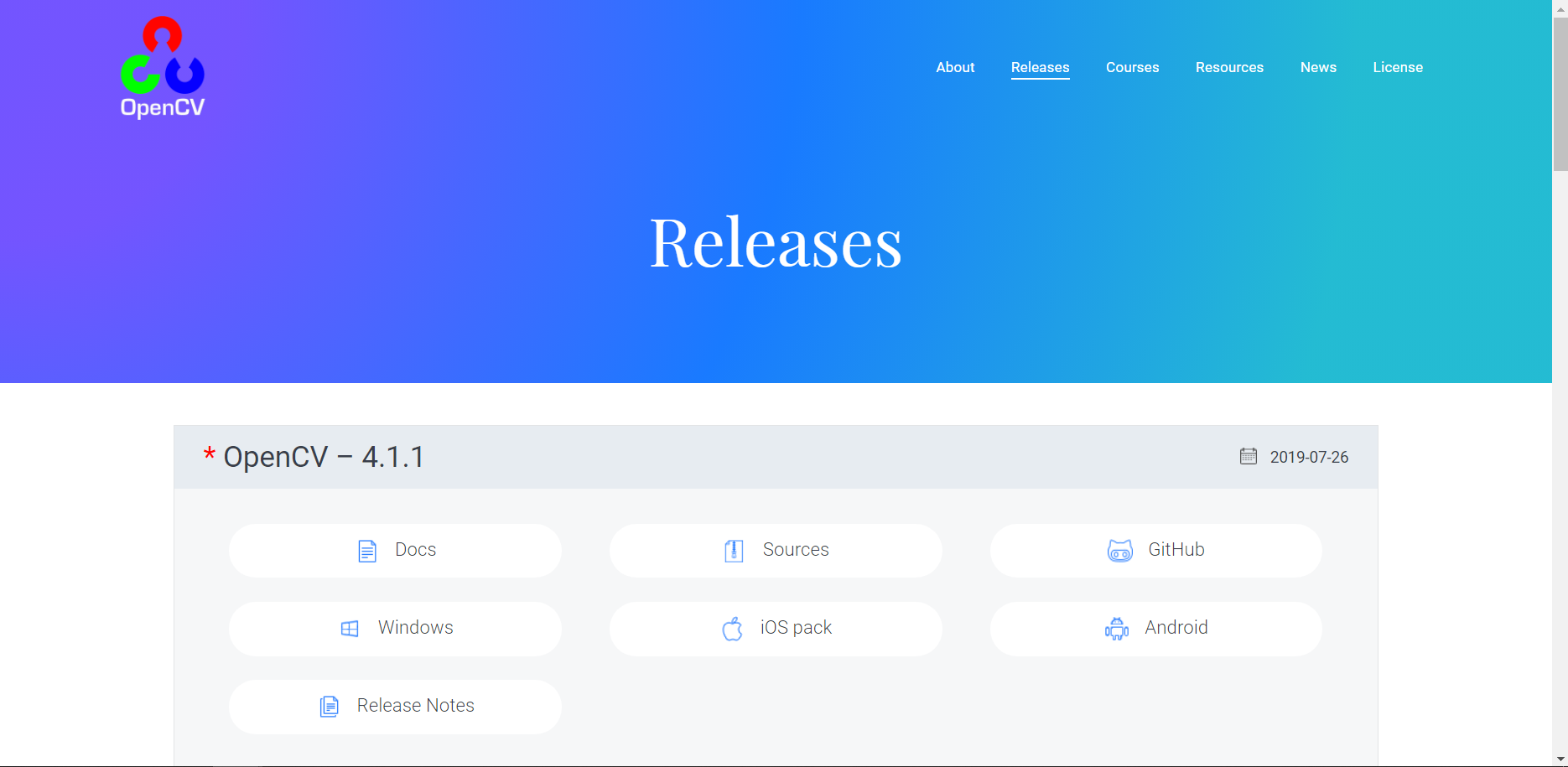 1.1.1 OpenCV官方网站下载:https://opencv.org/releases/ (官网打开速度有点慢也许打不开,可选择网盘下载或GitHub下载)