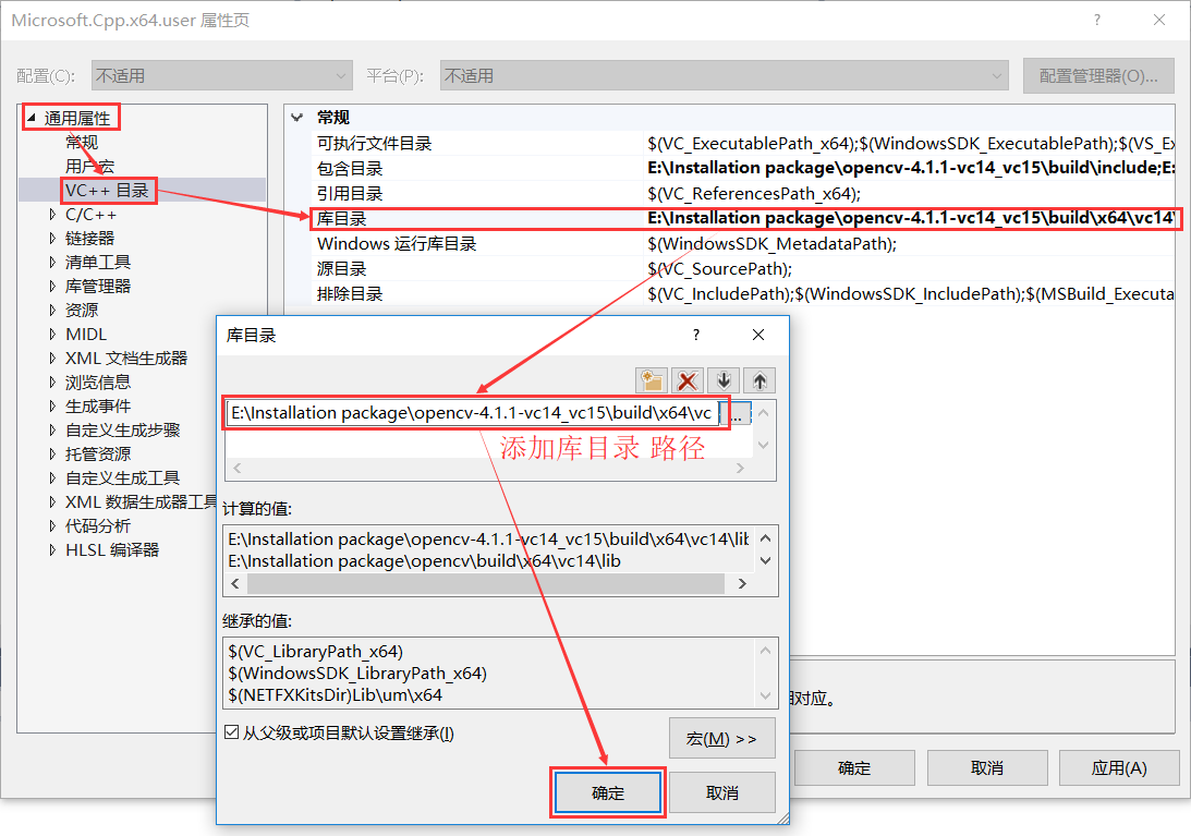 路径为:E:\Installation package\opencv-4.1.1-vc14_vc15\build\x64\vc14\lib