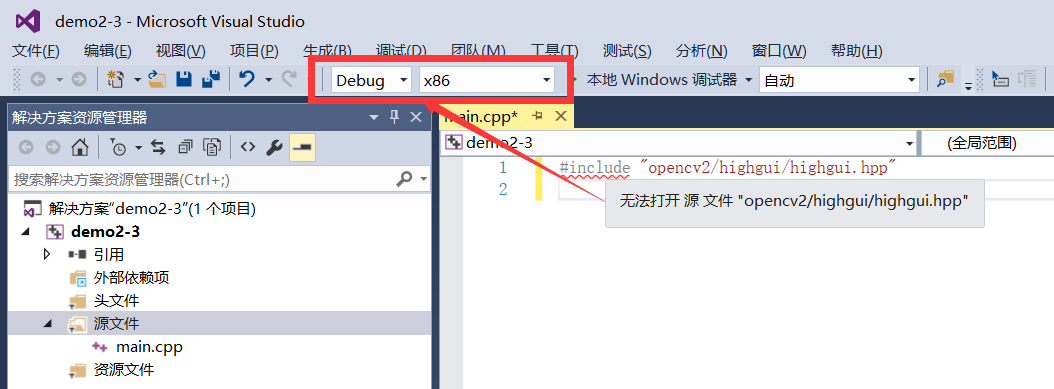 答:可能是新建项目,管理器没有配置好,配置管理器,Release和Debug的选择与配置链接库(3.4)有关。Debug / Release? x86 / x64?(每次新建项目,Don't forget 手动选择!!!)