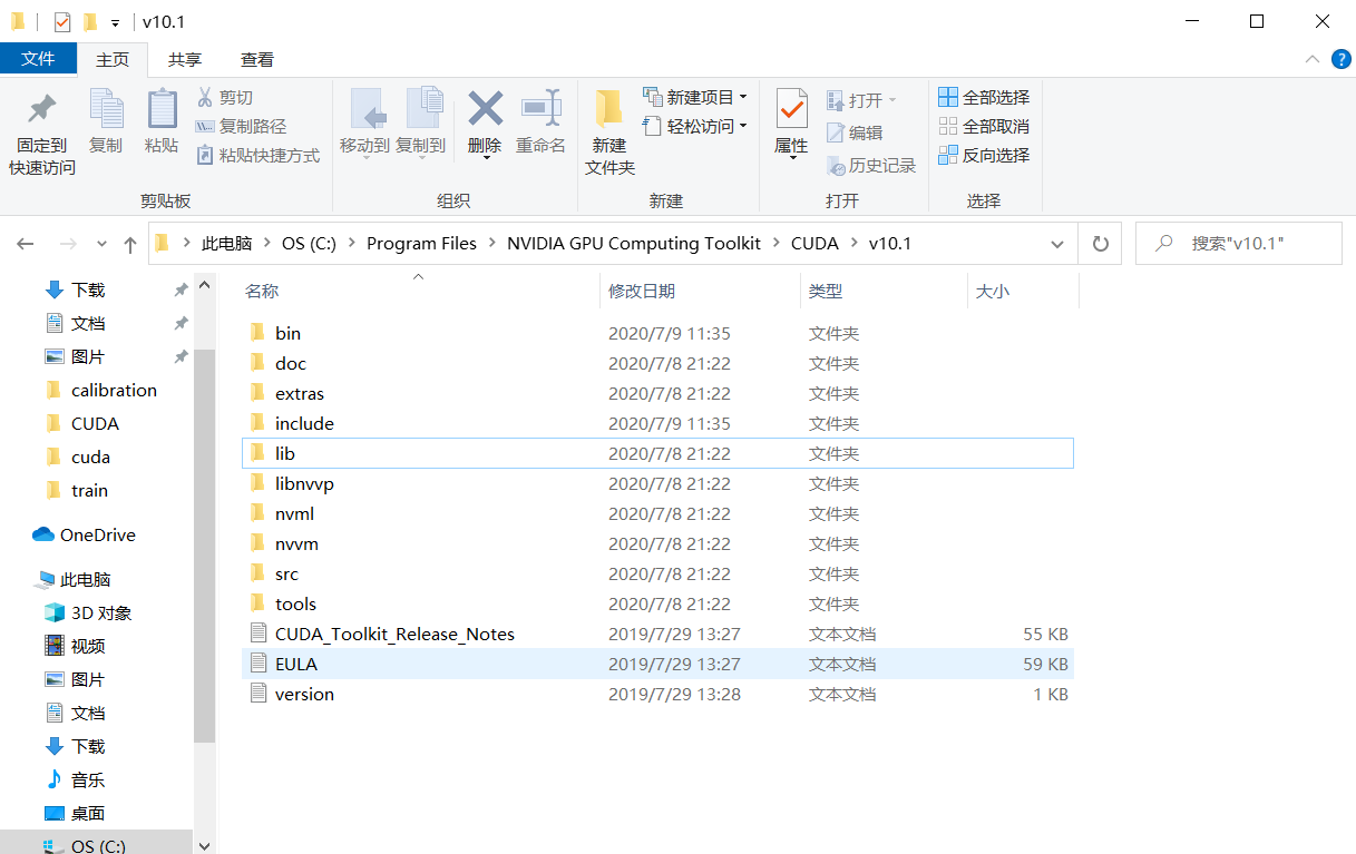 解压后,你会看到名为“cuda”的文件夹,文件夹下面有3个子文件夹(bin,lib,include)你需要把这3个子文件夹复制到C:\Program Files\NVIDIA GPU Computing Toolkit\CUDA\v10.1文件夹下(此为默认安装路径,若更改,找到自己的NVIDIA GPU Computing Toolkit\CUDA\v10.1安装路径)。