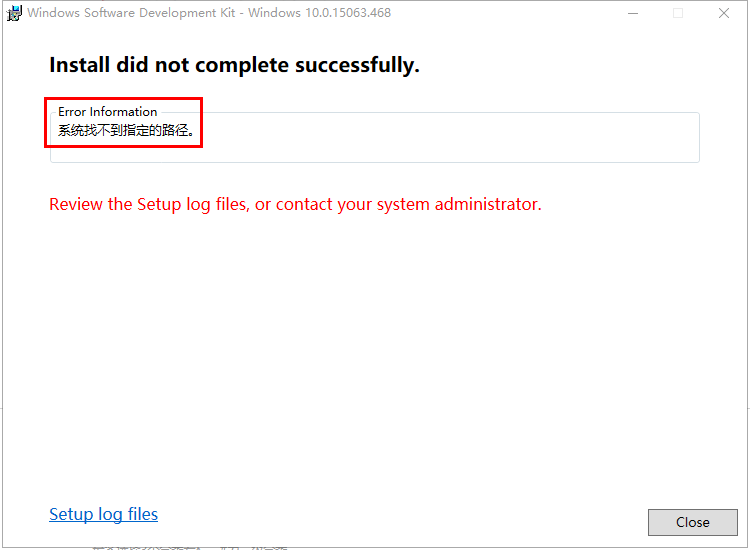 问题1:无法安装Win10SDK_10.0.15063.UWP.Native