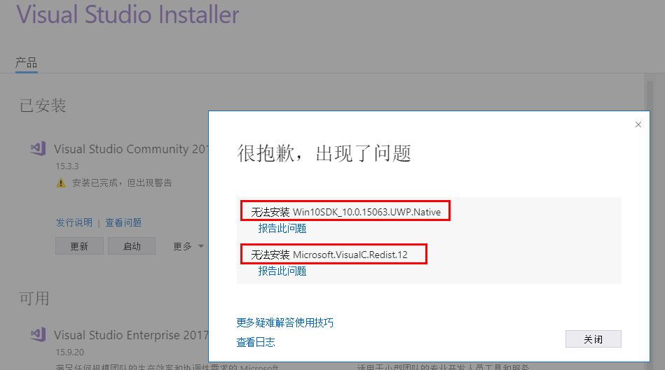 问题2:无法安装Microsoft.VisualC.Redist.12