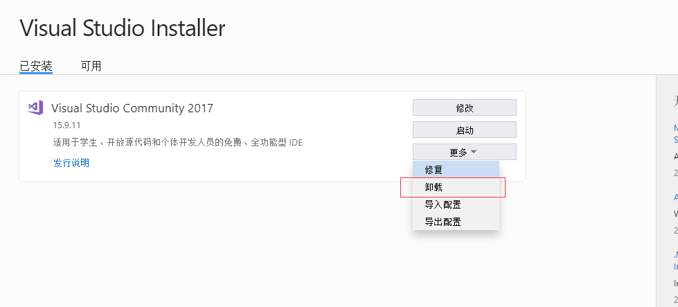 如上图可知卸载方法。推荐使用2017版本(因为2019新出并不稳定),下载器下载地址https://pc.qq.com/