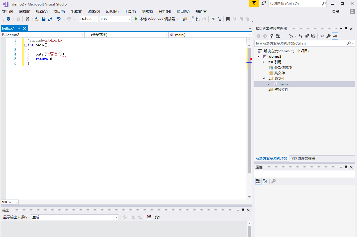 如果代码没有任何错误,会在下方的 “输出窗口” 中看到编译成功的提示: