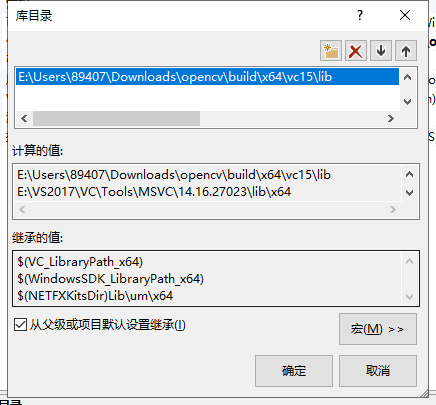 然后是添加lib目录,在通用属性—>VC++目录—>库目录中添加:...opencv4.0\build\x64\vc15\lib
