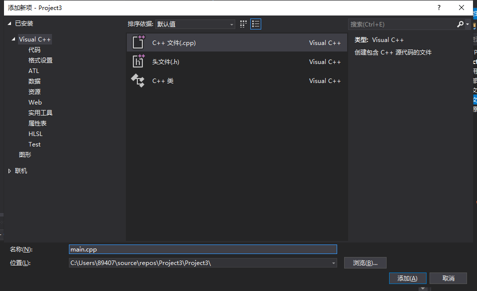 环境配完了尝试一下可不可以运行,测试一下:在解决方案管理器中右键“源文件”,添加一个main.cpp。