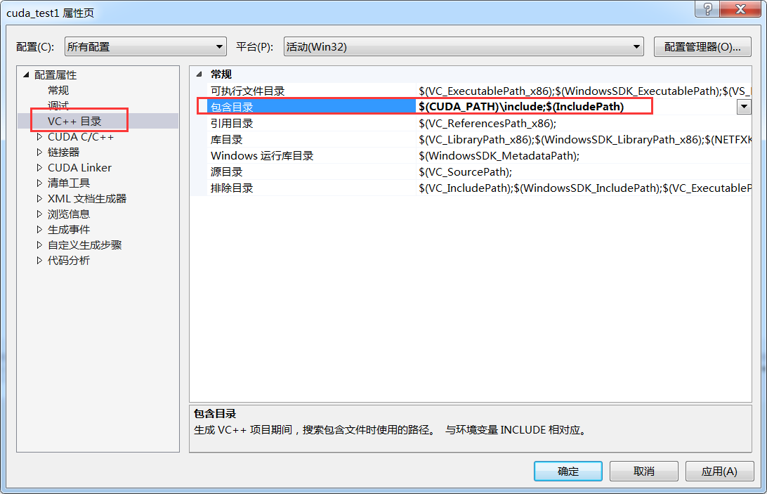 添加包含目录: $(CUDA_PATH)include