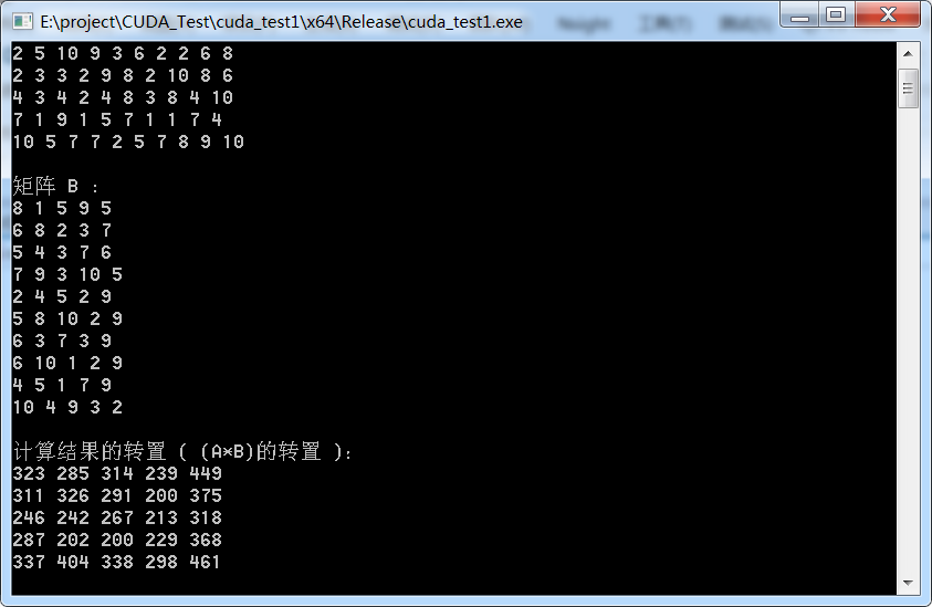 cout << "计算结果的转置 ( (A*B)的转置 ):" << endl;