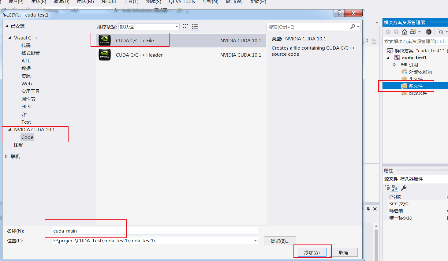 (2)新建的工程中添加CUDA C/C++ File