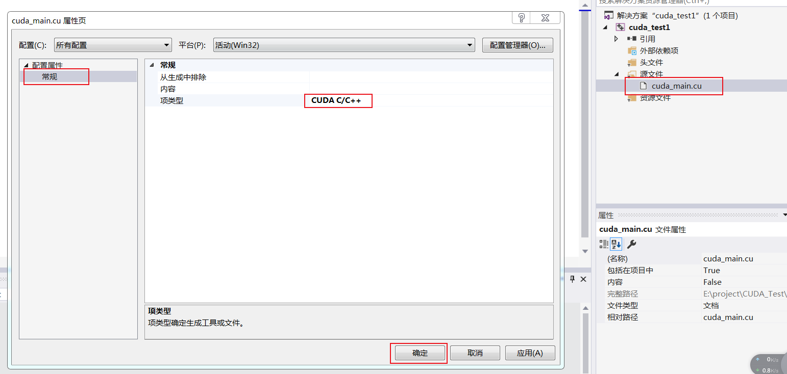 (4)cuda_main.cu的属性配置成“CUDA C/C++”
