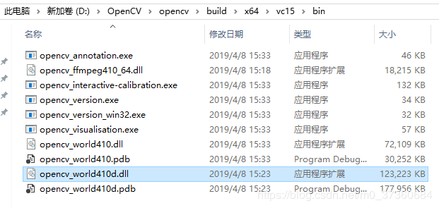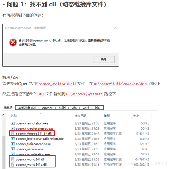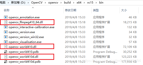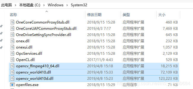 1.11 找到OpenCV安装后文件夹D:\OpenCV\opencv\build\x64\vc15\bin,将下面的3个.dll文件复制到C:\Windows\System32这个文件夹下: