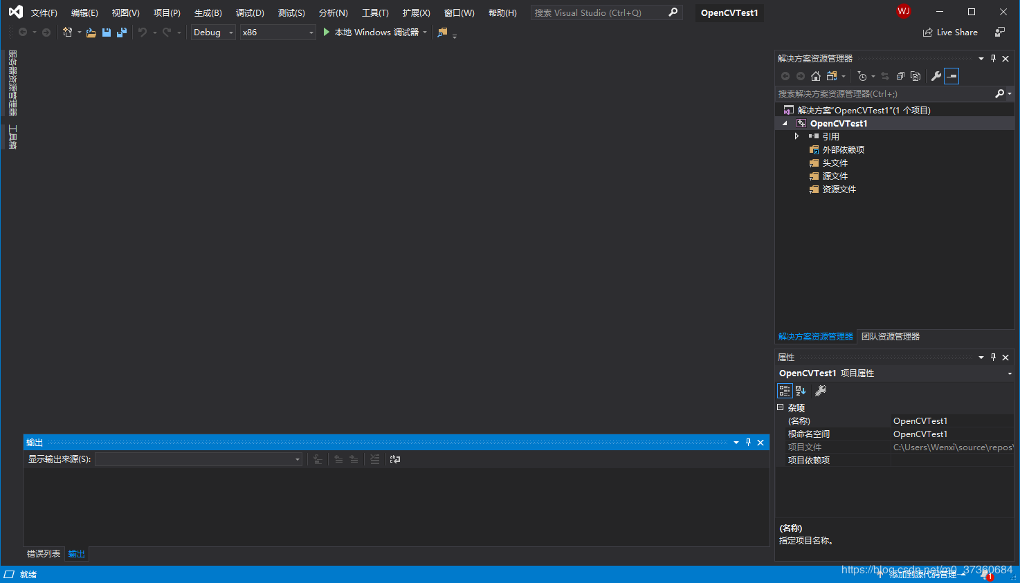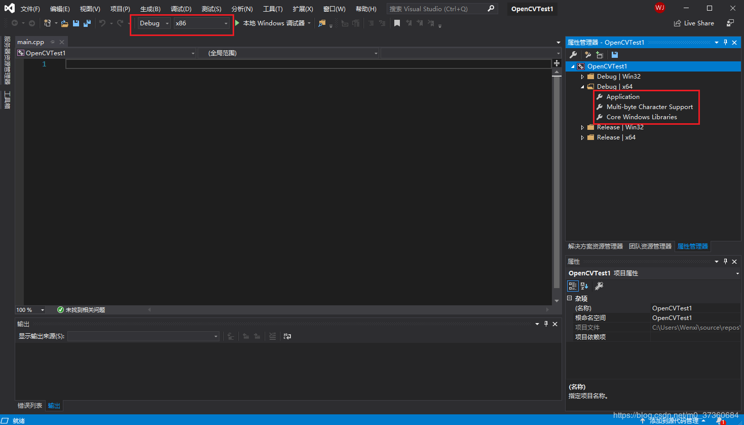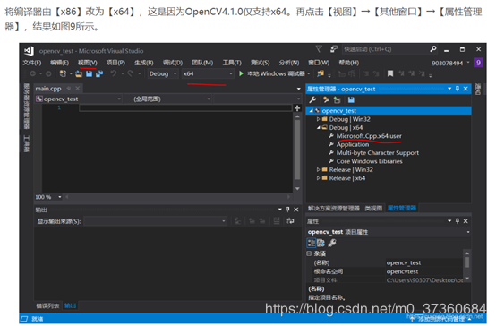 将编译器由【x86】改为【x64】,这是因为OpenCV4.1.0仅支持x64。