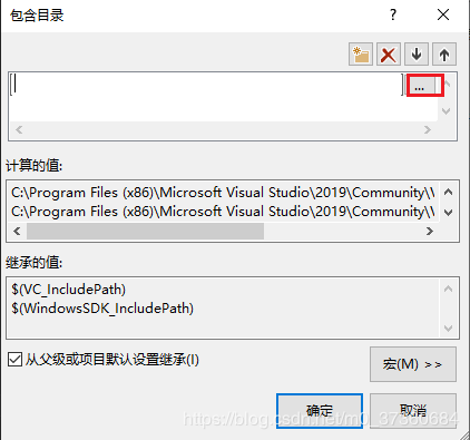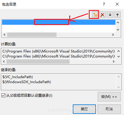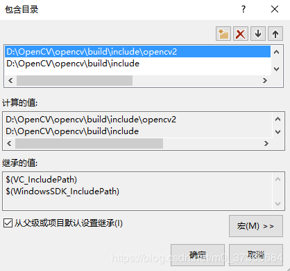 结果如下图所示,不要手动输入,点击右侧的...按钮,选择 D:\OpenCV\opencv\build\include 和 D:\OpenCV\opencv\build\include\opencv2 这2个路径(没有D:\OpenCV\opencv\build\include\opencv), 点击 确定。