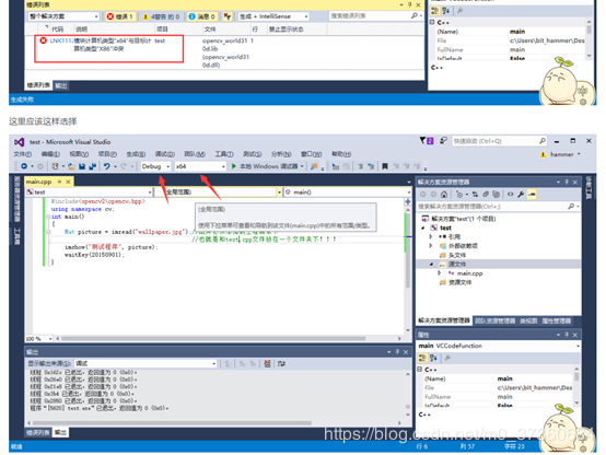5.5 注意DeBug中是X64,而不是X32,新版本的OpenCV不支持X32