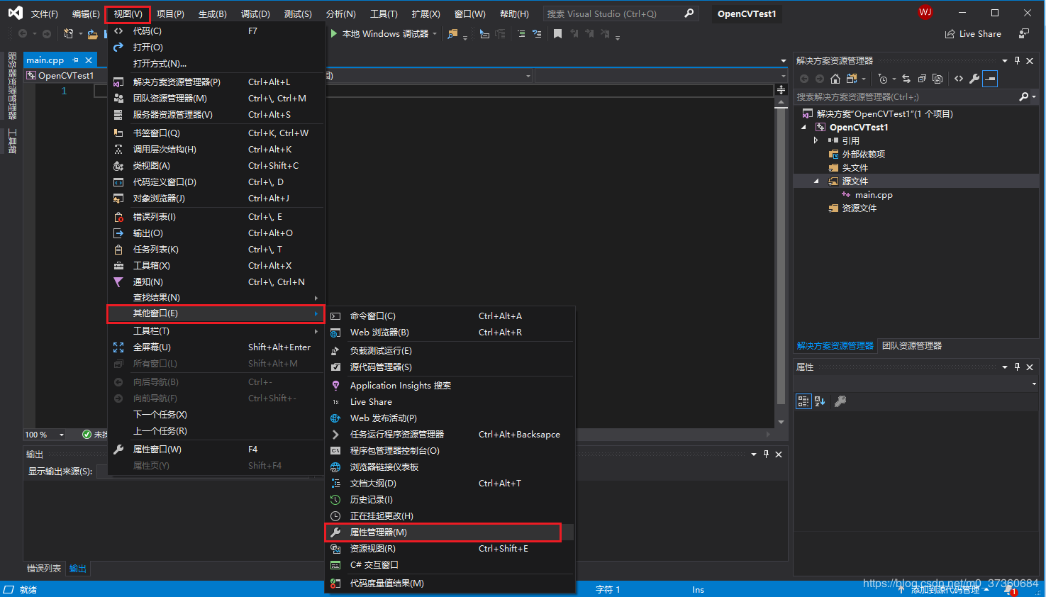 1.8 单击【视图】-->【其他窗口】-->【属性管理器】: