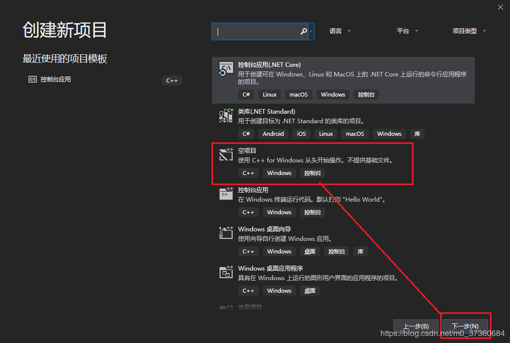 1.2 选择【空项目】,然后单击【下一步】: