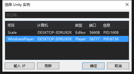 还可以选择调试Unity打包出来的windows执行程序: