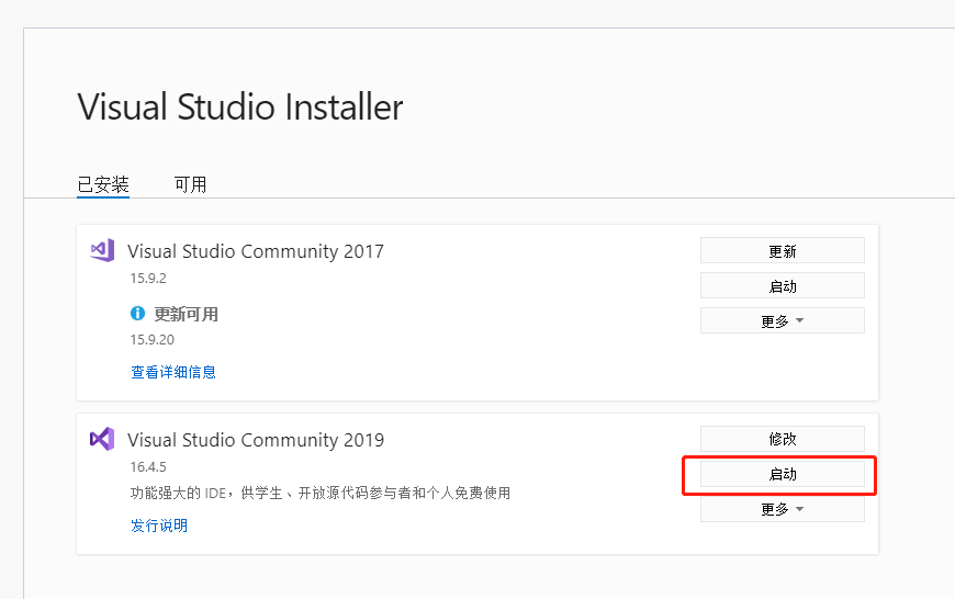 由于新建的项目是MFC的项目,而这是标准库确实,需要重新设置一下VS的配置,通过“工具--获取工具和功能”菜单 功能可以打开VS的重新配置。