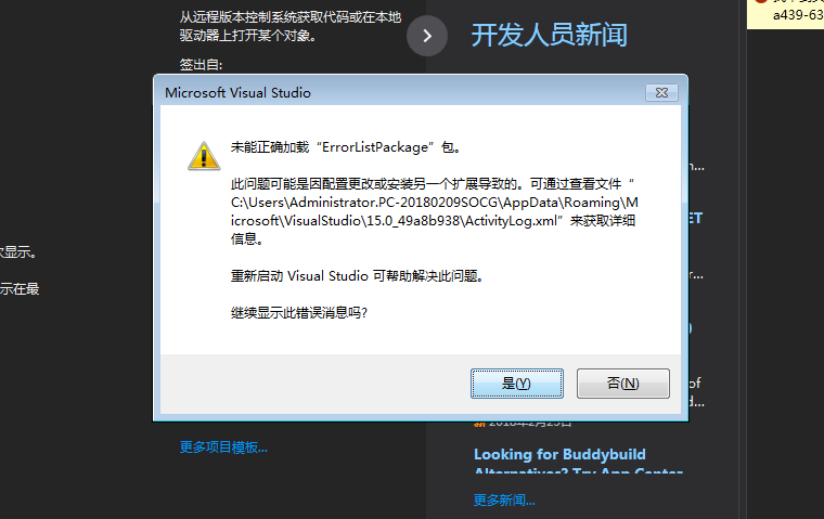 vs2017 安装好了,但是有很多报错,第一个是安装完成后显示安装失败,具体内容我忘记截图了,第二个是打开vs2017后一直弹出报错。