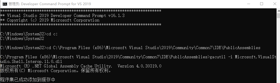 - 3.输入gacutil -i Microsoft.VisualStudio.Shell.Interop.11.0.dll